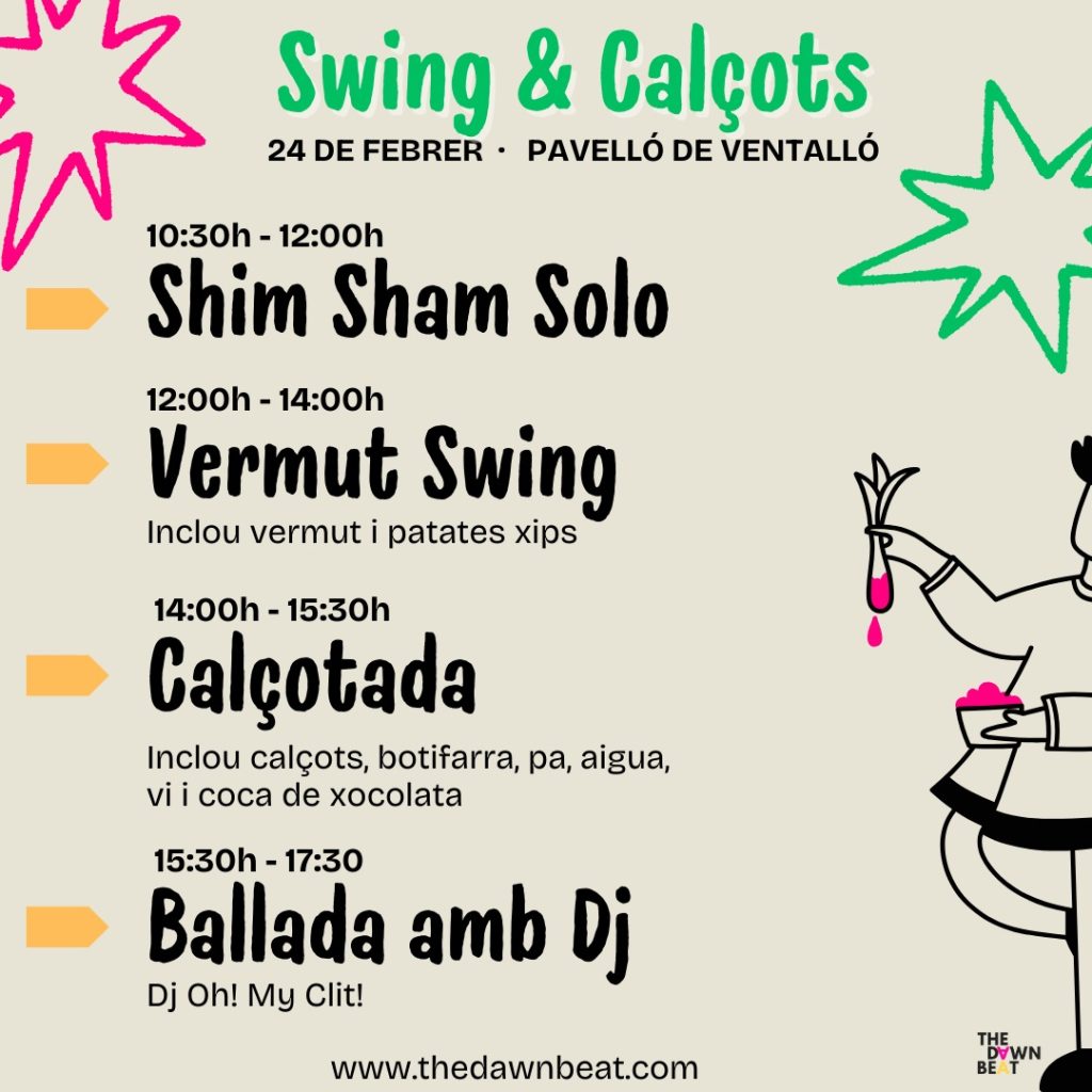 El 24 de febrer tenim una cita amb el Lindy Hop i amb els Calçots! Com cada any, barrejarem la nostra música preferida i un dels àpats més populars al pavelló de Ventalló.