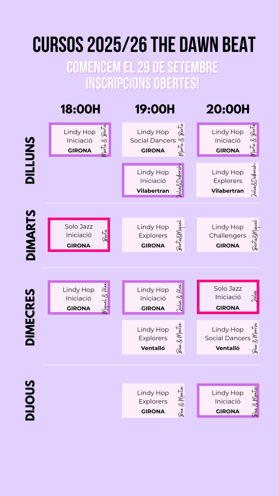 Calendari Lindy Hop & Solo Jazz Cursos Regulars 25/26