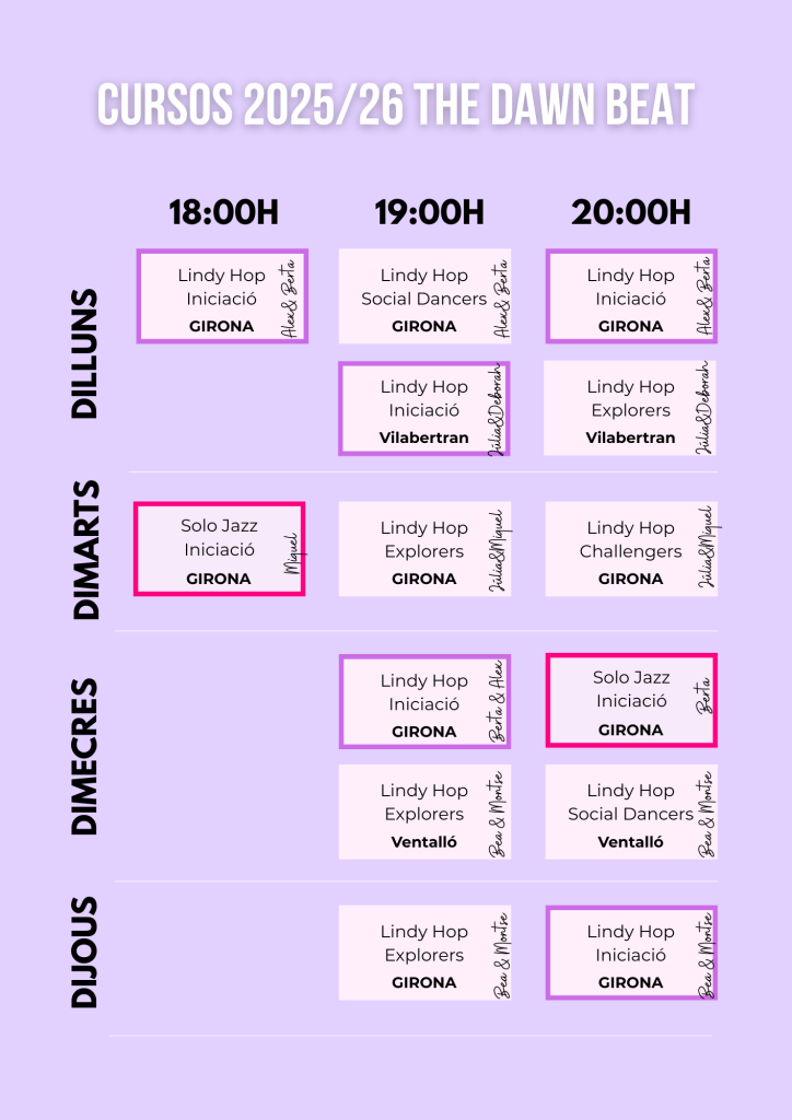 Calendari Lindy Hop & Solo Jazz Cursos Regulars 25/26